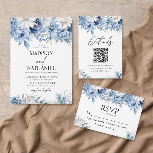 Dusty Blue Floral Flower Garden Wedding Save The Date