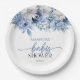 Dusty Blue Floral Flowers Baby Shower Paper Plate