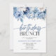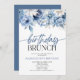 Dusty Blue Floral Flowers Birthday Brunch Party Invitation