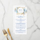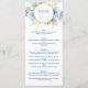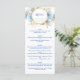 For dusty blue spring or summer weddings, this icy blue and gold touched design matches the wedding suite. Personalise everything and use the offerings text to create your own list of foods from appetizers to desserts. For elegance and simplicity the reverse remains white, but if you prefer, the design tool offers many choices of colour, from classic blue used for the menu to the pale dusty blue #95B8D9