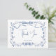 Dusty blue floral greenery ribbon elegant wedding thank you card