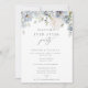 Elegant Watercolor Dusty Blue Garden Botanical Floral, Happily Ever After Party Invitation. Grey colour typography with white colour background on front and coordinating blue colour backing.