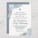 Dusty Blue Floral Modern Catholic QR Code Wedding Invitation