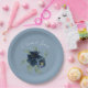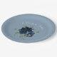 Dusty Blue Floral Modern Script Elegant Name Paper Plate