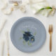 Dusty Blue Floral Modern Script Elegant Name Paper Plate