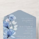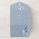 This all-in-one wedding invitation features pretty transparent dusty blue florals and elegant typography. The invitation includes a perforated RSVP card with your wedding website QR code. Designed by Thisisnotme©
