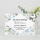 Dusty Blue and Eucalyptus Greenery Modern and Elegant Floral Watercolor Spring We have Moved New Home or New Address cards - includes beautiful and elegant script typography with modern botanical flowers and greenery for the special New Home or New Address celebration.