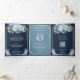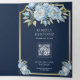 Dusty Blue Floral Navy QR Code All in One Wedding Tri-Fold Invitation