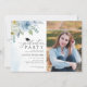 Dusty Blue Floral Photo Graduation Party Invitation