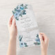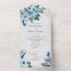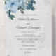 This simple yet elegant invitation features dusty blue watercolor flowers on a distressed white background is perfect for any style wedding from casual garden wedding to more formal affairs. The All-in-One wedding invitations are both beautiful and practical by combining the wedding invitation with an easy to remove perforated RSVP postcard. They are also quick and easy to prepare for mailing. Simply address the invitation, fold the back flap and seal with the included clear stickers. Once your guests receive the pre-addressed invitation they simply tear off the perforated RSVP card and drop it in the mail. The addition of the QR code allows your guests to easily access your wedding website for information including reception details and dinner choices!