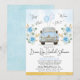 Dusty Blue Floral Retro Car Drive By Bridal Shower Invitation