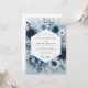 A romantic and ethereal design featuring a watercolor-style arrangement of dusty blue and deep indigo blossoms. Delicate foliage intertwines with the lush floral elements, creating a dreamy and elegant atmosphere for your special occasion. The overall palette evokes a serene and sophisticated feel.