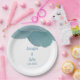 Dusty Blue Floral Rose Elegant Trendy Wedding Paper Plate