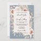 This Dusty Blue Rustic Floral Wedding Invitation is trending in a soft colour palette champagne and ivory earth tones on a dusty blue background. It features beautiful detailed blush and ivory roses and florals with dried palms and eucalyptus greenery with faux gold accents. This lovely colour palette is perfect for a spring, summer or fall wedding. Personalise with all of your wedding details.