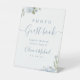 Dusty blue floral rustic Wedding Photo Guest Book Pedestal Sign