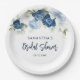 Dusty Blue Floral Script Bridal Shower Paper Plate