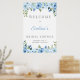 Dusty blue floral silver bridal shower welcome poster 24x36 sign, Contact me for matching items or for customization, Blush Roses ©