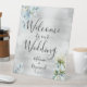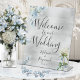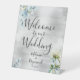 Dusty Blue Floral Silver Welcome To Our Wedding Pedestal Sign