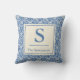 Dusty Blue Floral Toile Family Name Monogram Cushion
