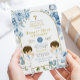 Dusty Blue Floral Twins Boy Praying Holy Communion Invitation