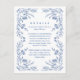 Complete your wedding stationery with this elegant blue floral vintage wedding details card. Featuring delicate vintage-inspired blue floral artwork, this insert is perfect for sharing important guest information while keeping your main invitation clean and timeless.