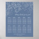 This elegant wedding table seating chart features a delicate floral ornamental design with flowers, birds and leaves on a dusty blue background. The text combines handwritten script and serif fonts for a stylish and modern look. Perfect for a winter or autumn fall wedding.