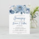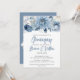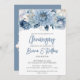 Dusty blue floral Wedding Anniversary party invitation using a modern font.