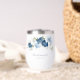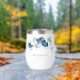Customise this wedding gift glass for the wedding party by clicking the "Personalise" button. The Wine Tumbler features a modern elegant chic dusty blue flowers with white, light blue, and olive green bloom. TIP: Great for surprise parties, baby showers, wedding reception, and retirement parties.
