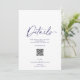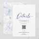 Share all the important information about your special day with this elegant wedding details card. Featuring delicate dusty blue watercolor florals and a blend of classic and script typography, this card is both stylish and functional. Includes space for ceremony times, venue info, accommodations, and a QR code or website for easy guest access. A beautiful addition to any wedding suite in a romantic blue theme.