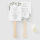 This elegant botanical wedding program fan features painted watercolor leaves and flowers. The florals and greenery are done in light muted dust blue, green and grey tones on a crisp white background. The bride and grooms names and wedding program timeline are set in a classic modern sans and script font. This double sided design is an elegant boho chic choice for spring, summer, fall or winter weddings. Designed by Victoria of VG Invites. To see more, visit www.zazzle.com/vginvites