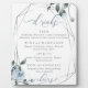 Dusty Blue Floral to match your wedding theme, This is for a full bar menu for a table top display - with lots of choices customised to your menu of course. Watercolor roses, leaves and berries in modern chic dusty blue surround a geometric terrarium style silver frame with sage greenery. Customise text, font style, colour and size. Original artwork created for the BarefootBride™ by © WhimsicalArtwork™ - This is part of a complete Wedding Stationery Suite with matching wedding, baby shower and other event stationery.