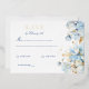 Delicate blue watercolors bring soft peonies and golden accents to your rsvp. Monograms, names and date on reverse in brown lettering. All the text is customisable, as well as templated for personalisation.