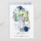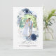 Dusty and navy blue flowers gold frame wedding thank you photo card