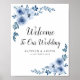 A lovely design with painted watercolor dusty blue flowers and black script. The text and colors on this wedding sign poster can be edited.