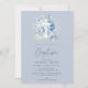 bohemian dusty blue flowers with a white cross design baptism card. The text and colours can be edited.
