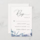 Beautiful and Chic Dusty Blue Watercolor Foliage and Blooms with Elegant Calligraphy Cream Colour Rsvp Response Card.