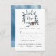 Captivating RSVP card with the ability to add or remove entree choices. Exquisite floral detail on the top with foliage in blue, sage, grey and caramel tones. Back in dusty blue. Card's back in dusty blue watercolor wash texture. Also available in Navy Blue. Part of our "Rustic Blue Mountains wedding and events collection".