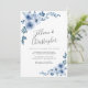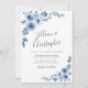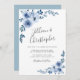 dusty blue floral wreath wedding invitation