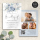 Dusty Blue Florals 3 Photos QR Code Wedding Invitation
