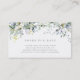 This design features dusty blue florals and eucalyptus leaves in shades of green.