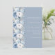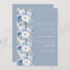 A dusty blue background, decorated with blue and white coloured flowers. Personalise and add your names and details.