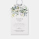This design features dusty blue florals and eucalyptus leaves in shades of green.