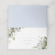 This design features dusty blue florals and eucalyptus leaves in shades of green.