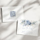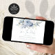 Modern Dusty Blue Florals QR Code Blue Writing Wedding. Available digitally and printed. Gorgeous florals in summery light blue and white and an elegant set script in blue for Save The Date. The rest of the text you can easily personalise with your details. Add your QR code to your wedding website on the back or delete this and the text on the back if not required.