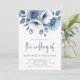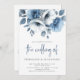 Dusty Blue Florals Script QR Code Wedding Invitation