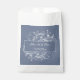 Delicate and timeless, this Dusty Blue Flourish Wedding Favour Bag adds a soft, elegant touch to your celebration. Featuring graceful white botanical vines and elegant flourishes, the design beautifully frames the bride and groom’s names in flowing script, perfect for a botanical theme wedding. The simple layout and muted dusty blue background create a serene, romantic aesthetic, ideal for holding small treats or thank-you gifts. A charming wedding favour supply that brings refined nature-inspired style to your reception.