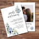 A luxury style modern wedding photo invitation. Minimalist layout. This sets the tone for an elegant wedding invitation. Not happy with the wordings, colours. Simply edit fonts, colours, images and personalise it with your details. Visit our Dusty Blue Flower collection for coordinating and matching stationery and party goods. Thank you cards, napkins, plates, favour tags, favour box and more.