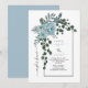 Dusty blue watercolor flowers and arch spring wedding couple's shower invitation. This lovely wedding design features an arch frame with dusty blue cactus flowers and green leaves on the left corner. The name is in script typography.