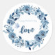 Dusty Blue Flowers Elegant love You Classic Round Sticker