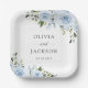 Dusty Blue Flowers, Greenery, Boho, Floral Wedding Paper Plate
